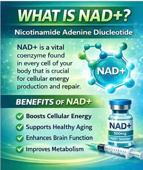 NAD (nicotinamide adenine dinucleotide) is a coenzyme that naturally exists in every cell of your body. It plays a vital role in energy production, DNA repair, and cell signaling. As we age, NAD levels decline, and that’s why NAD therapy (often through IV infusions, oral supplements, or precursors like NMN or NR) has gained attention for anti-aging, wellness, and metabolic health.